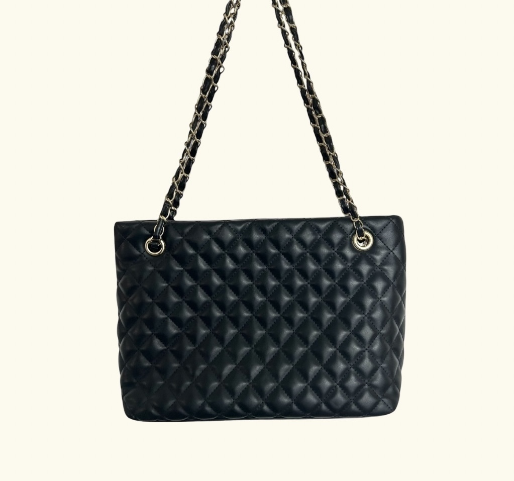 Bolso estructurado con acabado matelassé y cadena metálica.